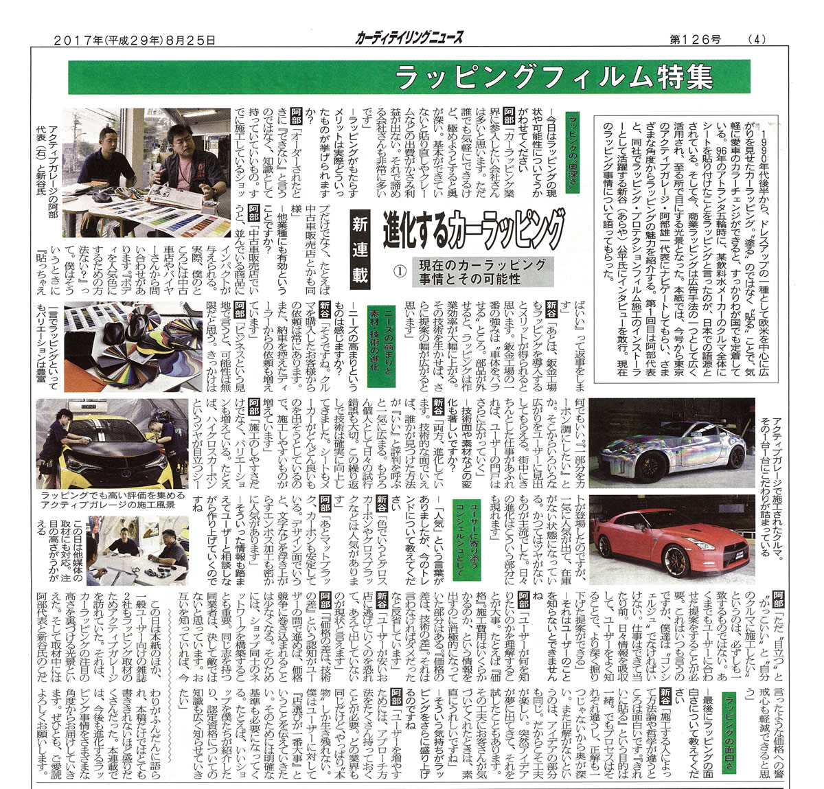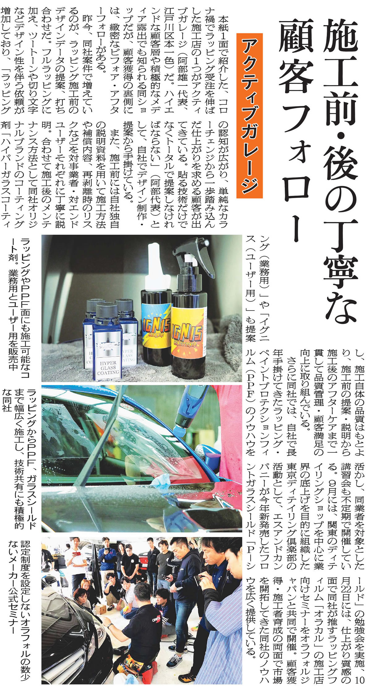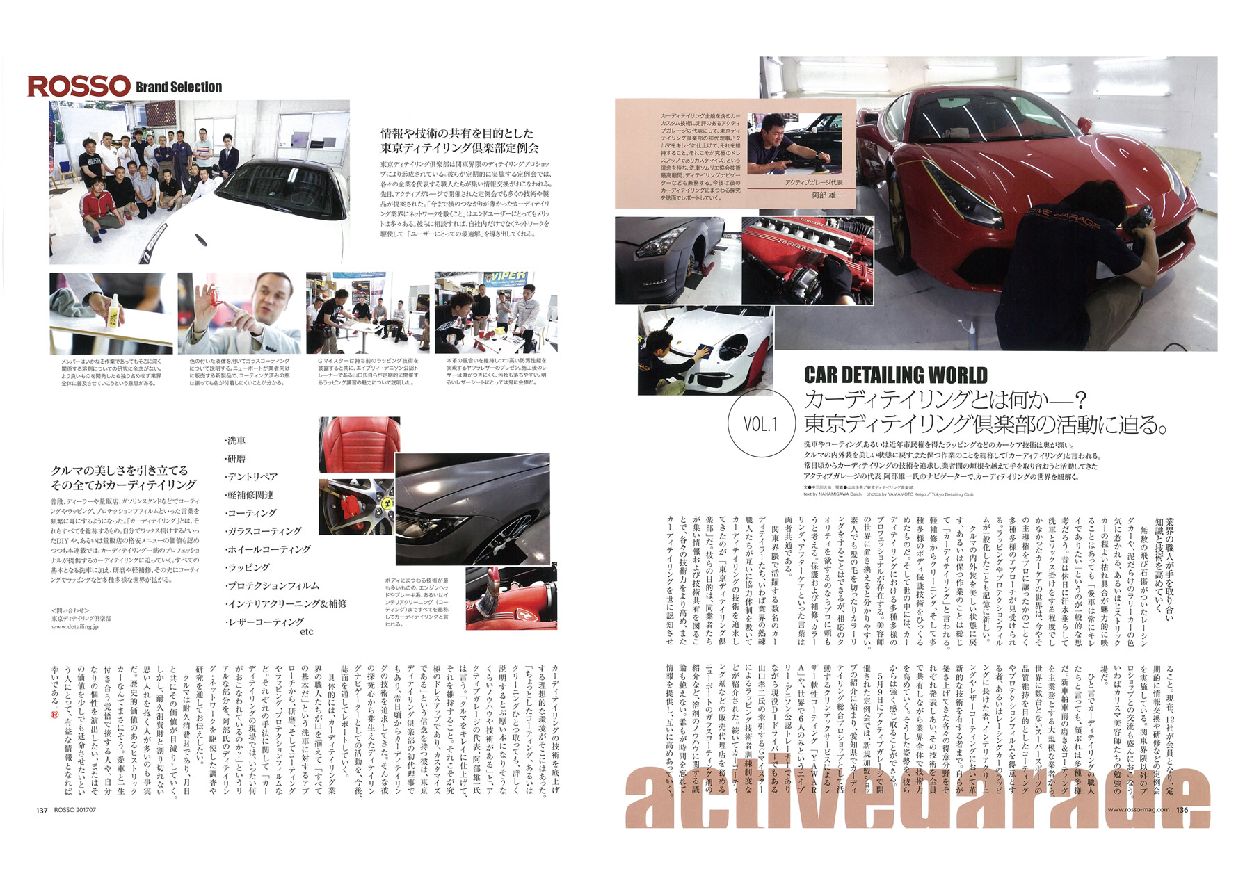 東京ディテイリング倶楽部参加ショップ「アクティブガレージ、アスナル」の記事が掲載されました。