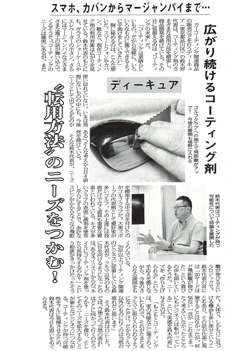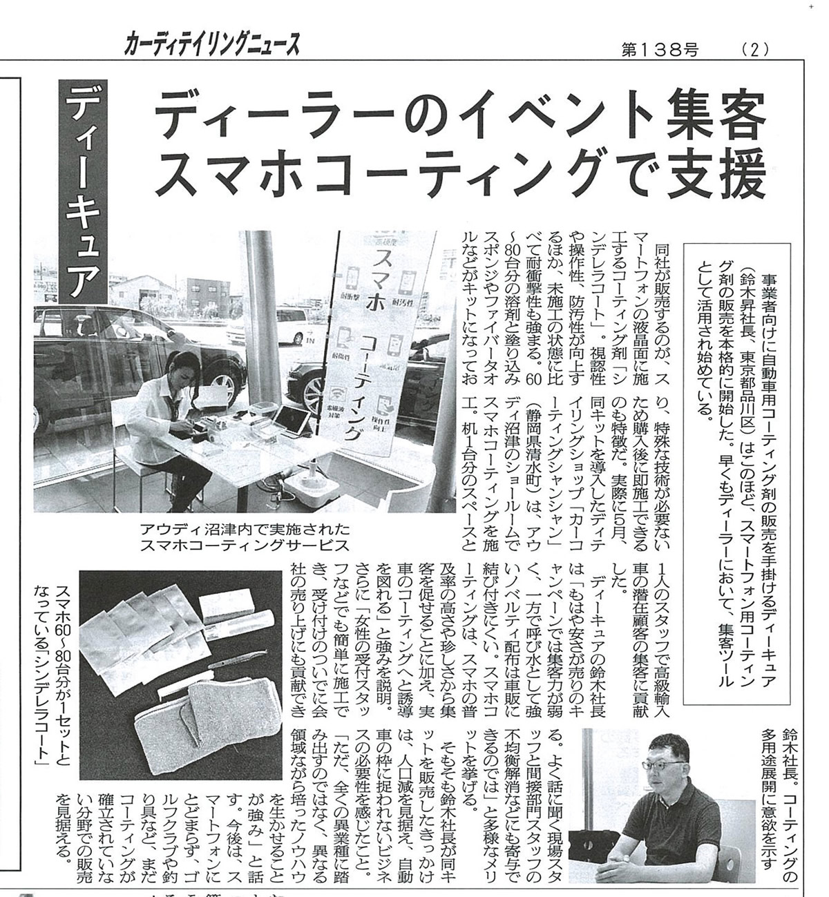 東京ディテイリング倶楽部参加ショップ「D’CURE」のスマホコーティングに関する記事が掲載されました。