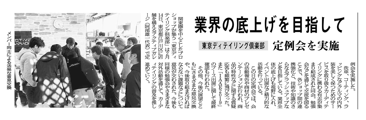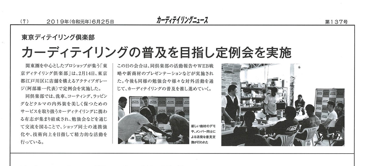 東京ディテリング倶楽部参加ショップ「アクティブガレージ、ジーマイスター、Car Beauty Pro ZEEK」の記事が掲載されました。