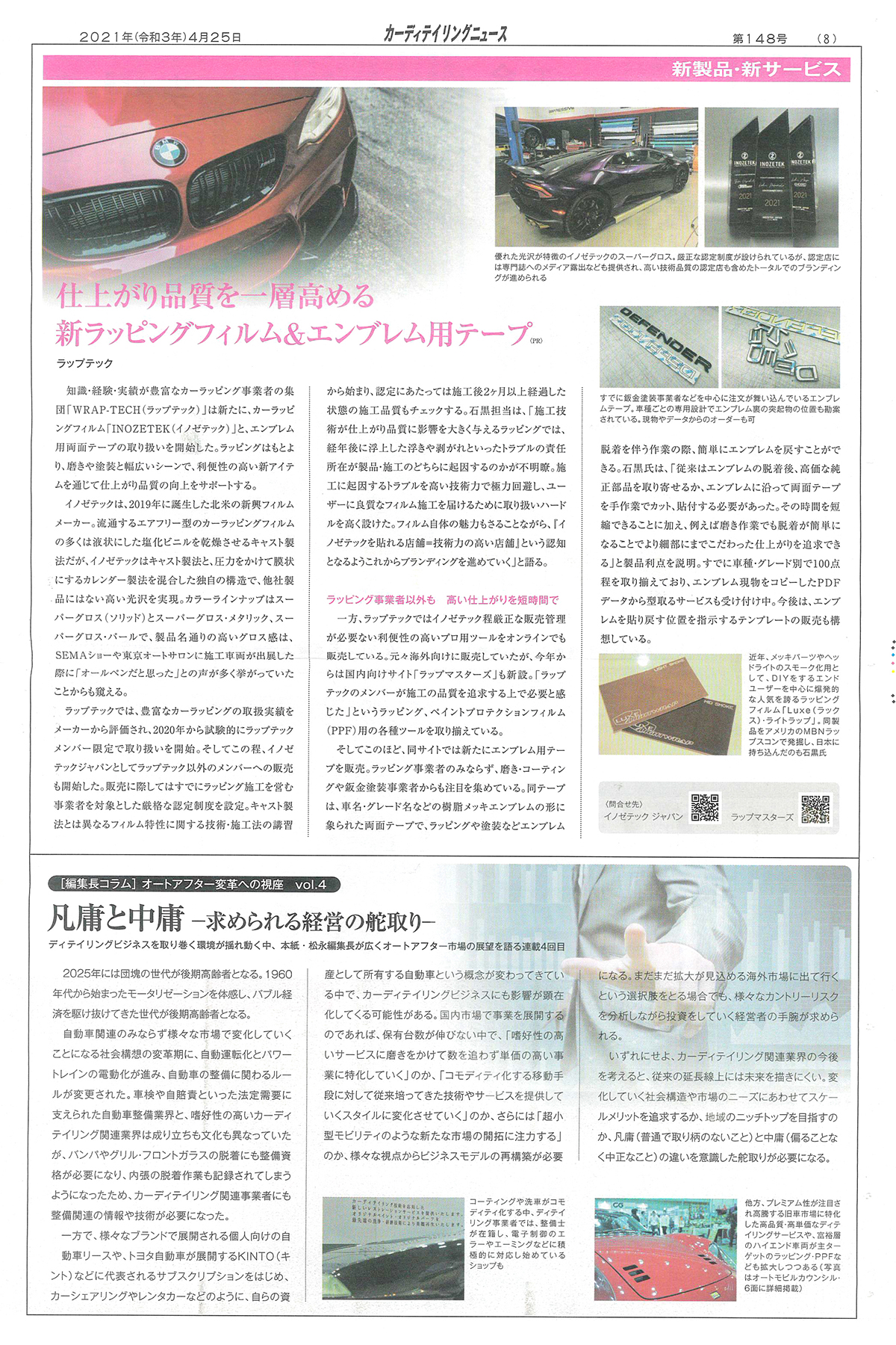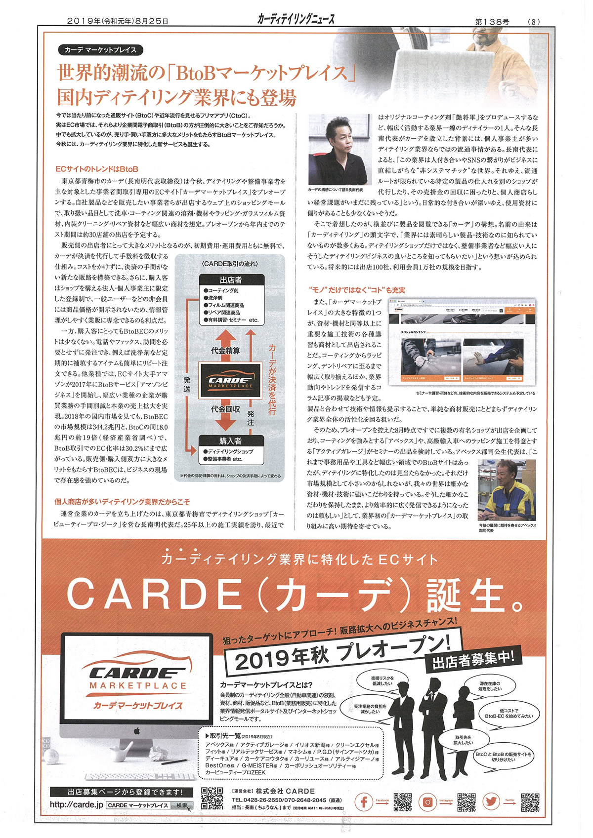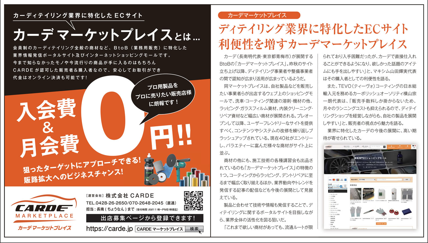 東京ディテリング倶楽部参加ショップ「Car Beauty Pro ZEEK」が立ち上げたカーデマーケットプレイスの記事と広告が掲載されました。