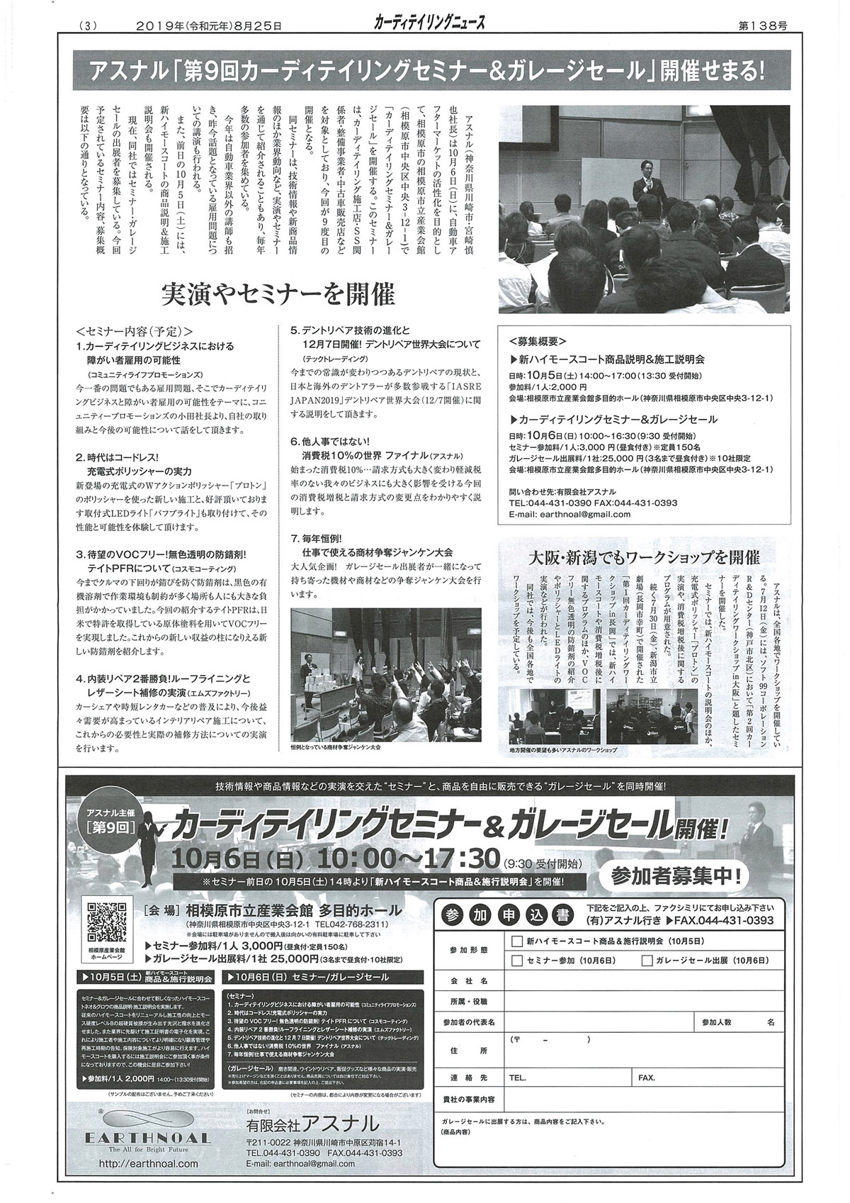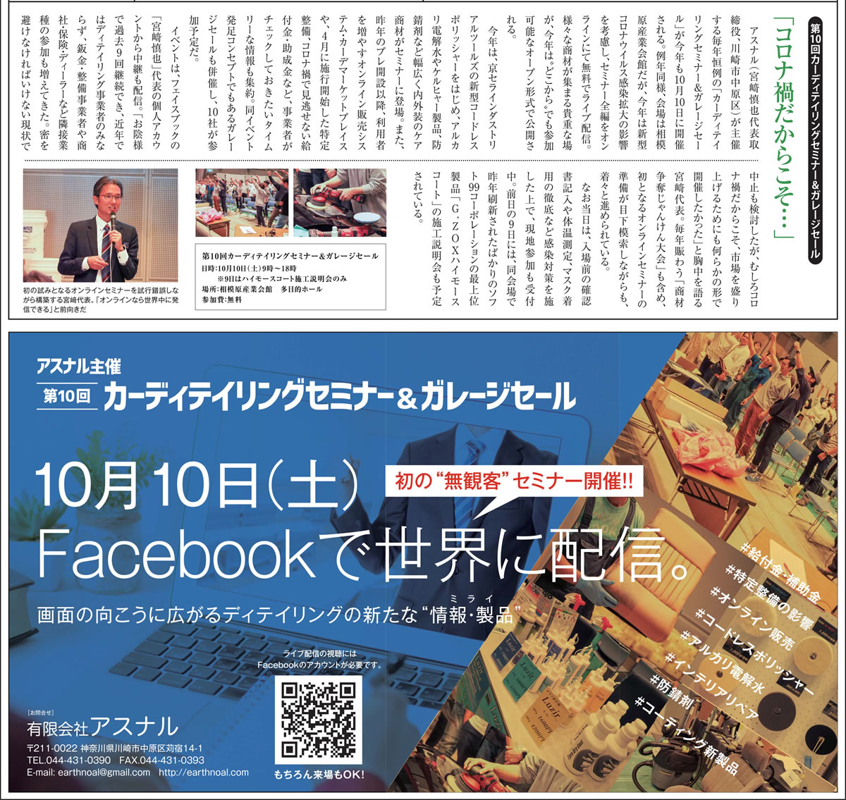 アスナル第7回カーディテイリングセミナー&ガレージセール開催の記事と広告が 掲載されました。
